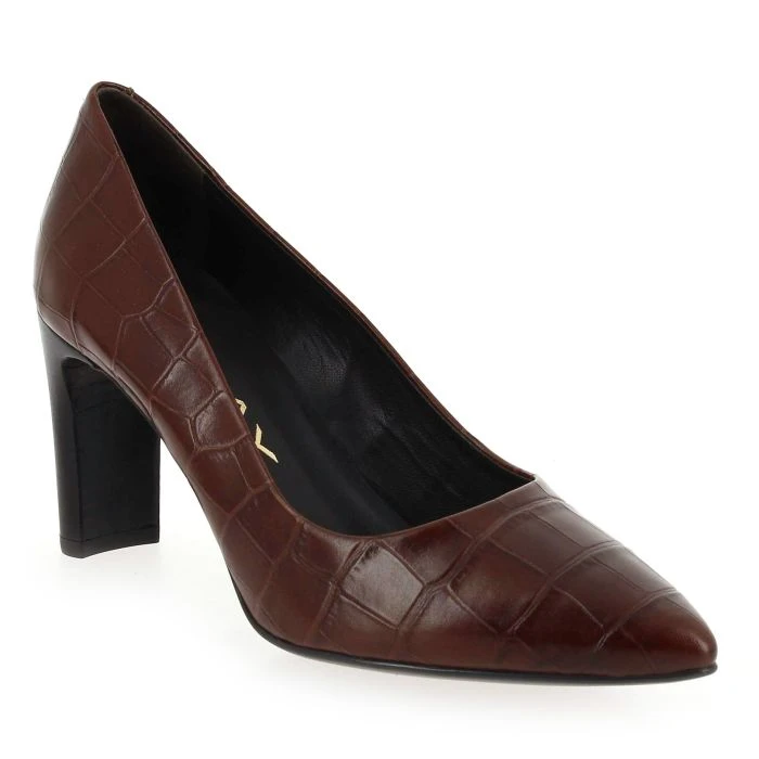 Craquez pour ces escarpins J HAY, vous serez quotidiennement, à la pointe de l’élégance ! En effet, la marque espagnole vous propose un escarpin moderne et tendance, qui mettra en valeur tous vos looks. Qu’elles soient en version noire ou cognac, ces chaussures s’habillent sous toutes les coutures d’une robe de cuir à l’imprimé croco. Pointu, le bout de cet escarpin tombe à pic pour renforcer leur caractère. Vous apprécierez l’épais talon haut, qui mêle avec brio féminité, confort et stabilité. Zoom sur l’arrière du modèle : la couture décalée est le signe d’une grande qualité !