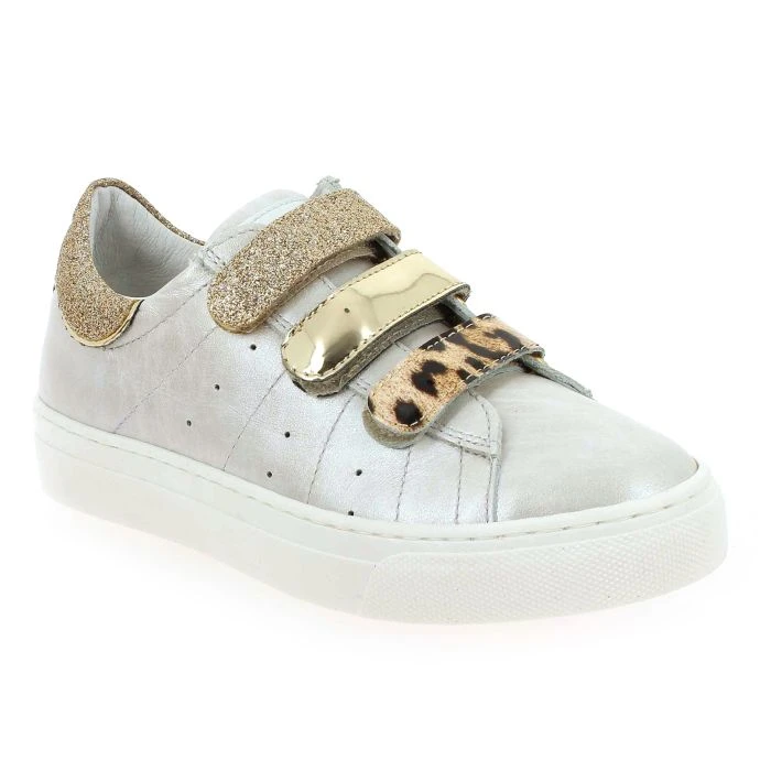 Ciao Bimbi vous propose cette saison une ravissante paire de baskets mode. Le modèle, recouvert de cuir, fera la joie des filles. Ces chaussures de teinte argent sont pourvues d’une doublure cuir et d’une semelle intérieure en cuir. Les 3525 de Ciao Bimbi vont vite être choisies !
