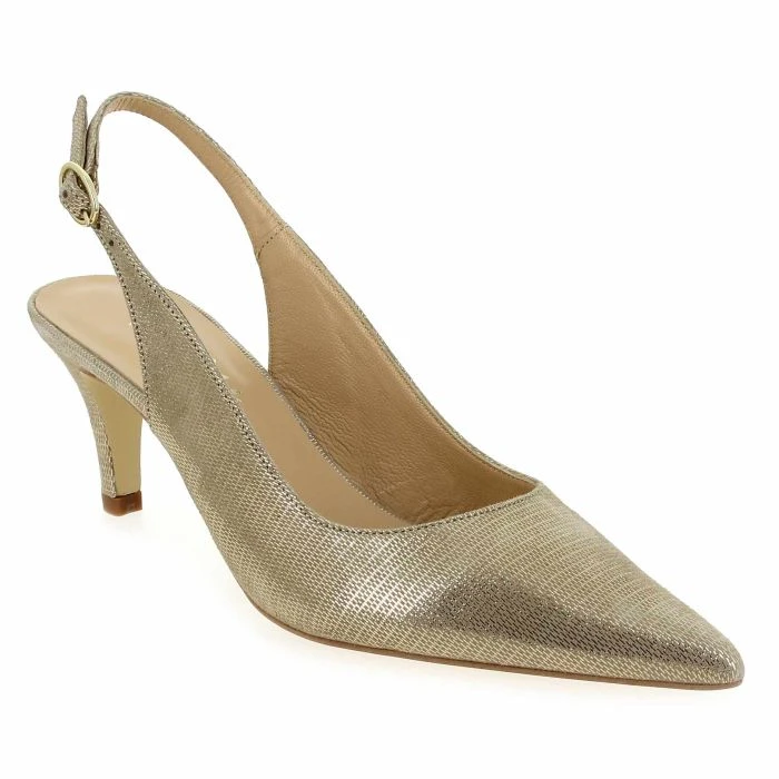 Chics et ultra-féminins, ces escarpins signés Janie Philip feront battre les cœurs ! Proposés en deux versions, ils s’habillent sous toutes les coutures d’une robe de cuir métallisée. Or ou marine, cette chaussure “shiny” est une invitation à l’élégance. Vous serez charmée par le petit talon aiguille, qui vous offrira une démarche aussi féminine que confortable. Avec leur bout pointu et élancé, ces escarpins affirment clairement leur caractère. La bride assure un ajustement parfait, ainsi qu’un bon maintien du pied. Rien à redire : brillez de mille feux avec ces escarpins “Made in Portugal”…